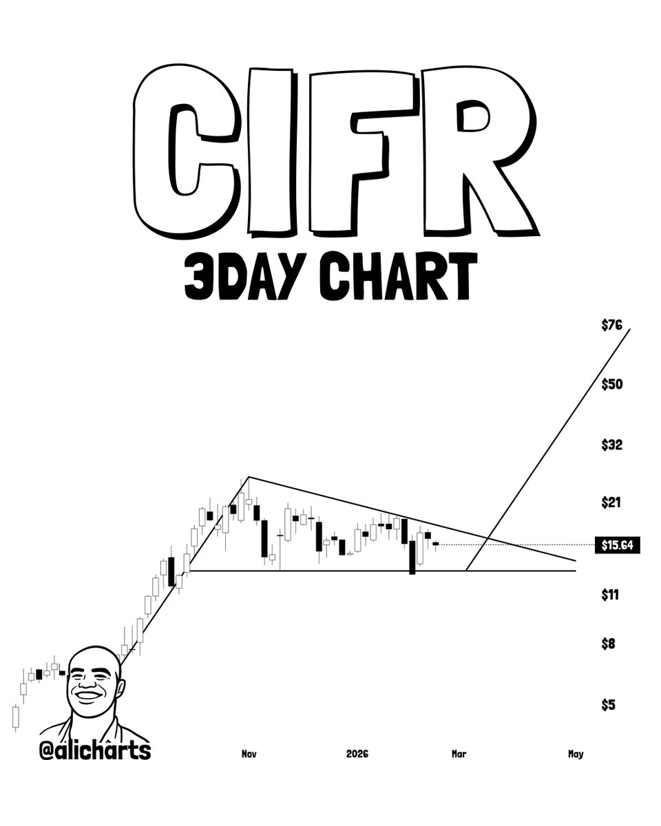 Cipher Mining $CIFR 似乎正在形成一个看涨旗形。持续收于 $18 上方可能会打开通往 $74 的大门。