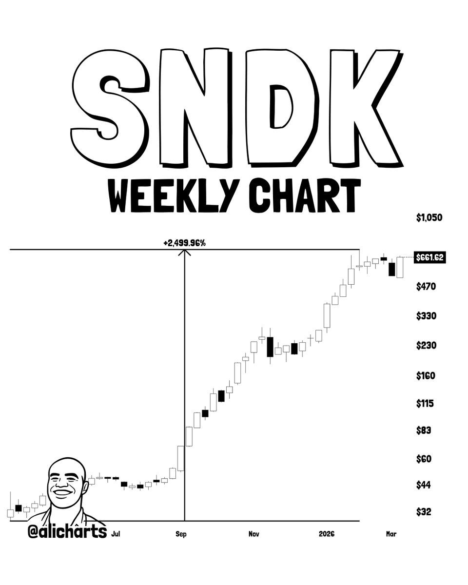 SandDisk $SNDK 在过去一年上涨了2500%。这是一个有稳定需求和已验证收入来源的真实业务。