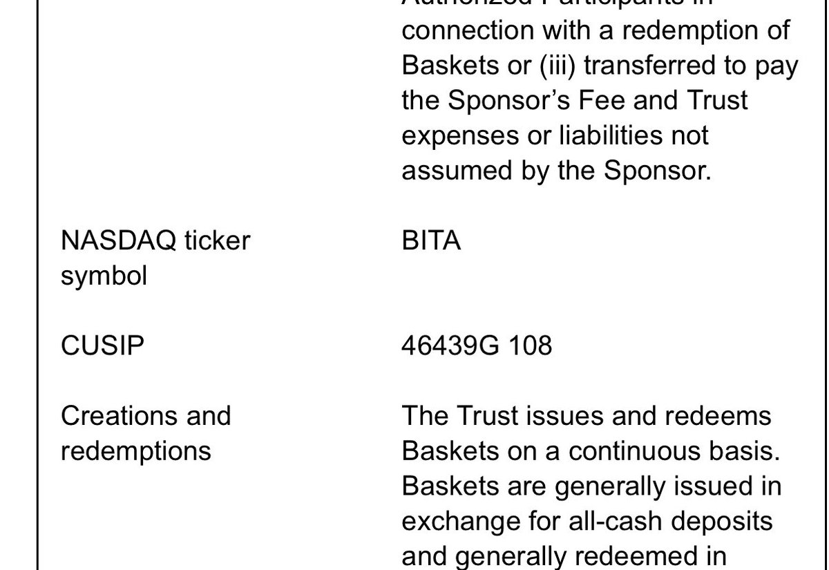 我们为即将推出的iShares比特币溢价收入ETF获得了一个股票代码:$BITA 他们刚刚为这个备受期待的续集提交了一份修订后的S-1文件。不过还没有费用。 我的高/低是38个基点。