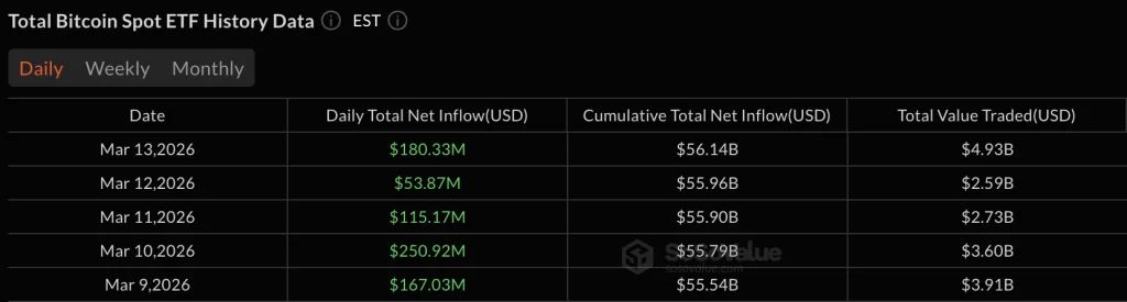 3月9日比特币ETF总净流量:+$167.68m