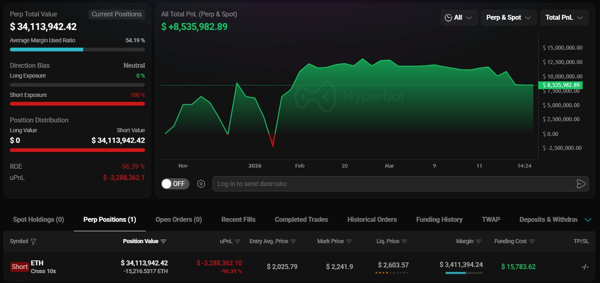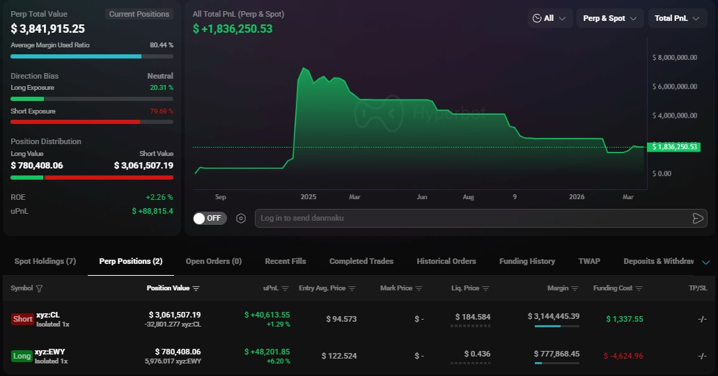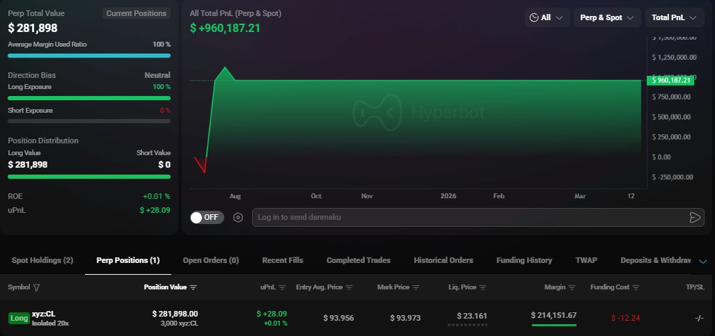 • 在 Hyperliquid 上,他存入了485,669 $USDC 并使用最大杠杆做多113万 $TRUMP(950万美元),未实现利润现在为118万美元。