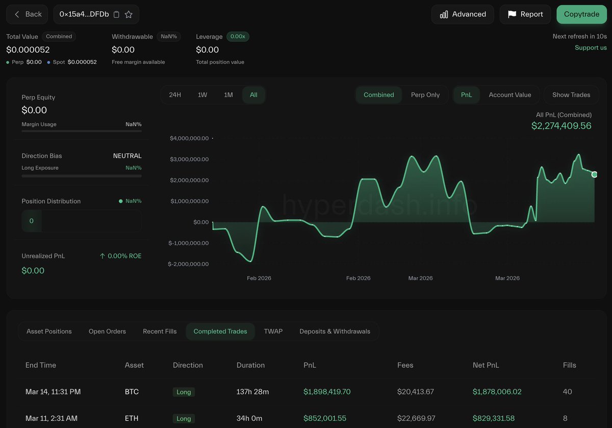 有人创建了新钱包来购买 $TRUMP 现货在 #Solana 上,同时还在 #Hyperliquid 上做多 $TRUMP —— 已经坐拥超过150万美元的利润!