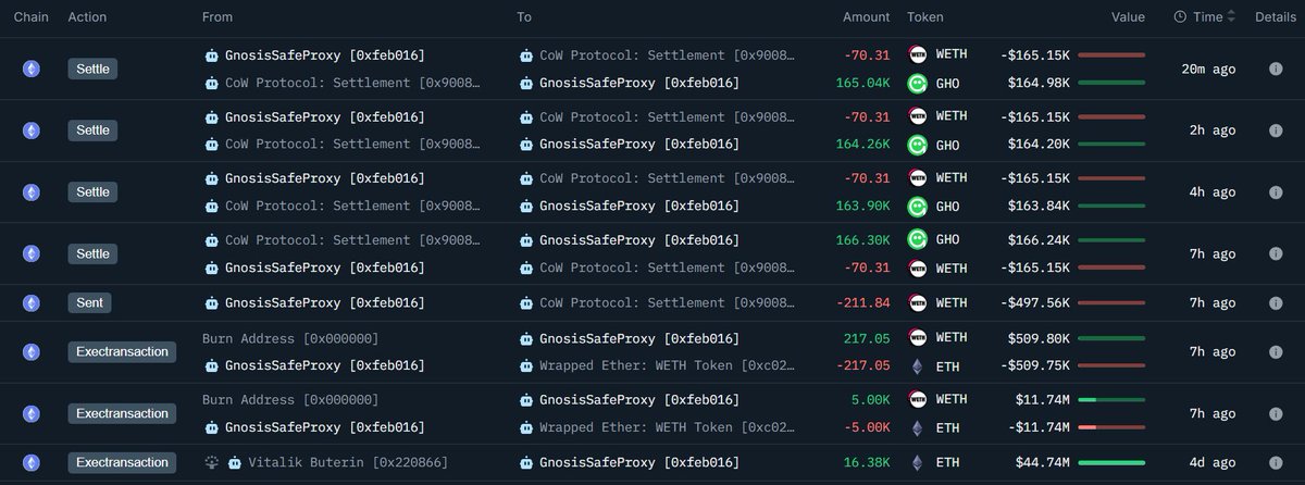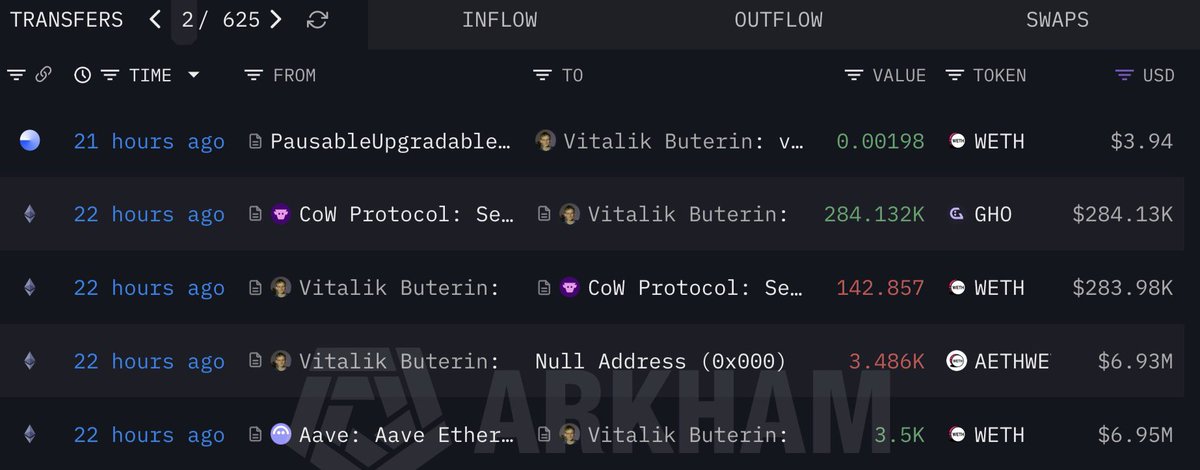 WLFI Strategic Reserve 地址竟然在将 $BTC 换仓成 $ETH 了?🤨 该地址 10 分钟前从 Aave 中取出 162.69 WBTC(约 1507 万美元),随后通过 Cowswap 卖出 27.1 WBTC 换为 770.6 WETH,价值 250 万美元,似乎还将继续换仓