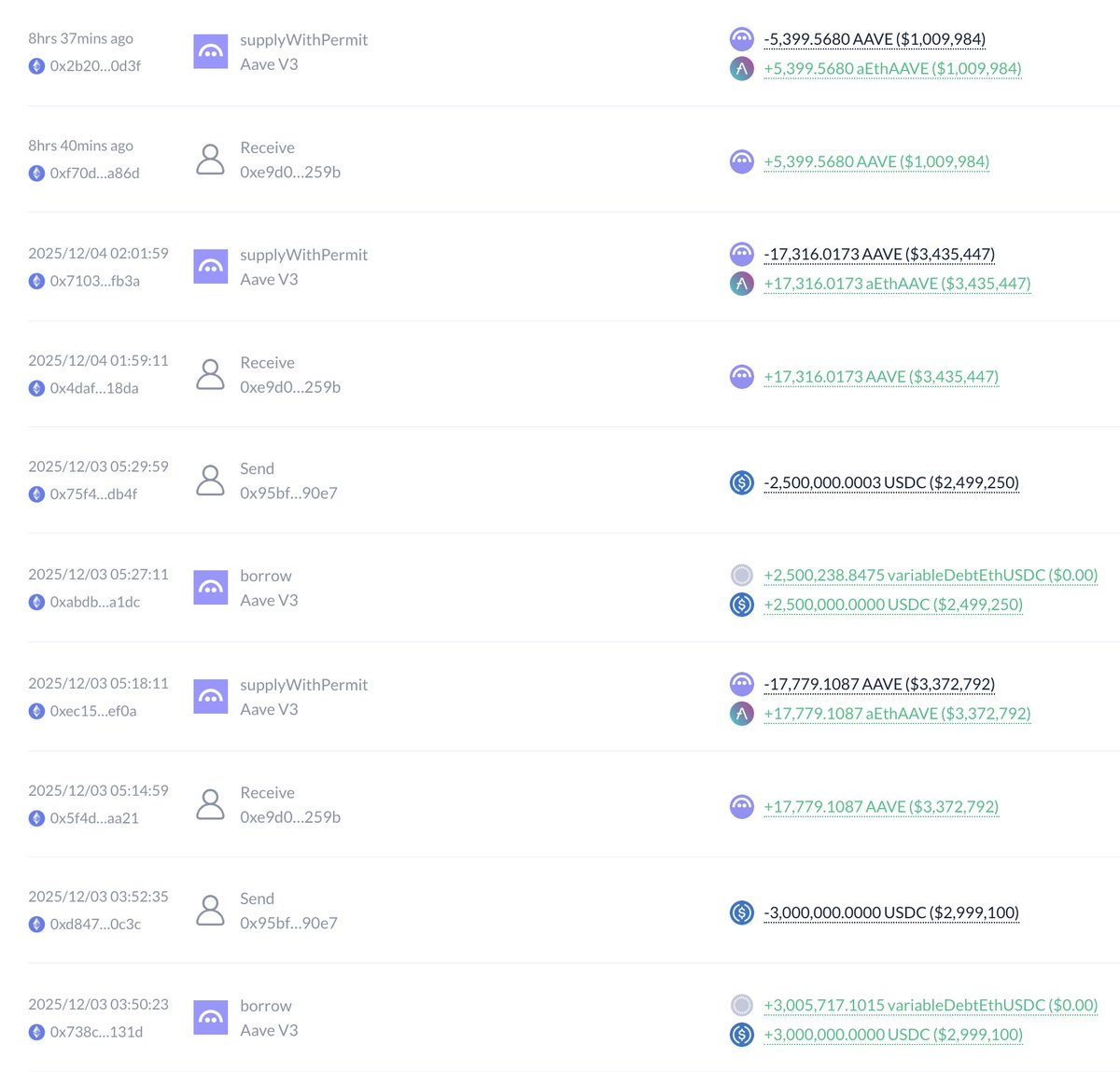 AAVE合约成交笔数