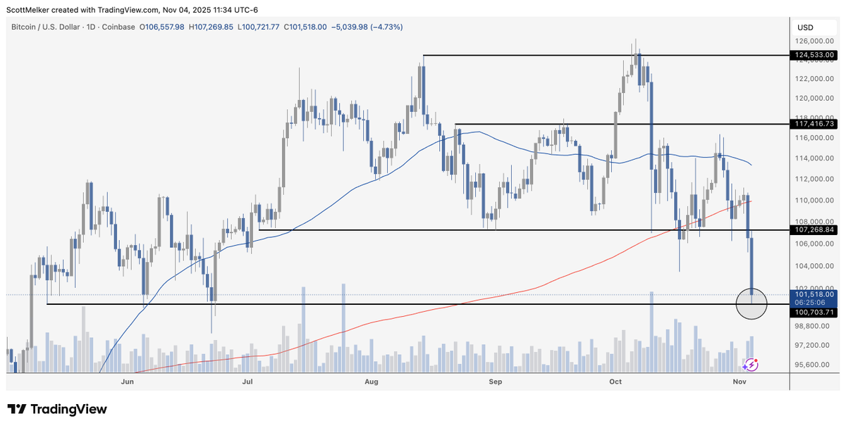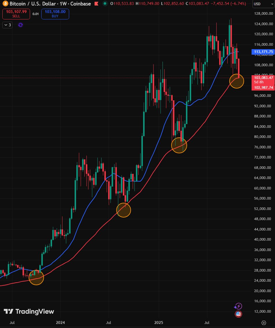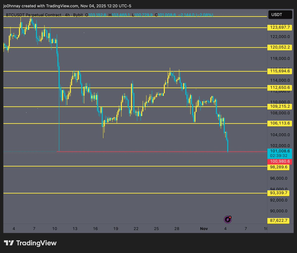 比特币($BTC)面临10万美元崩盘风险……巨鲸与机构大举抛售致市场“跌入熊市”