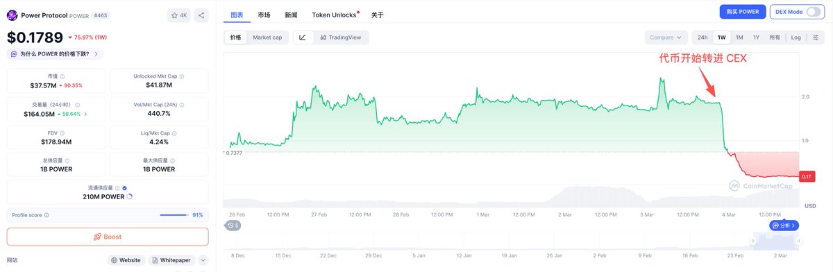 ◎随后 POWER 价格开始下跌,从 $1.86 到 $0.17。