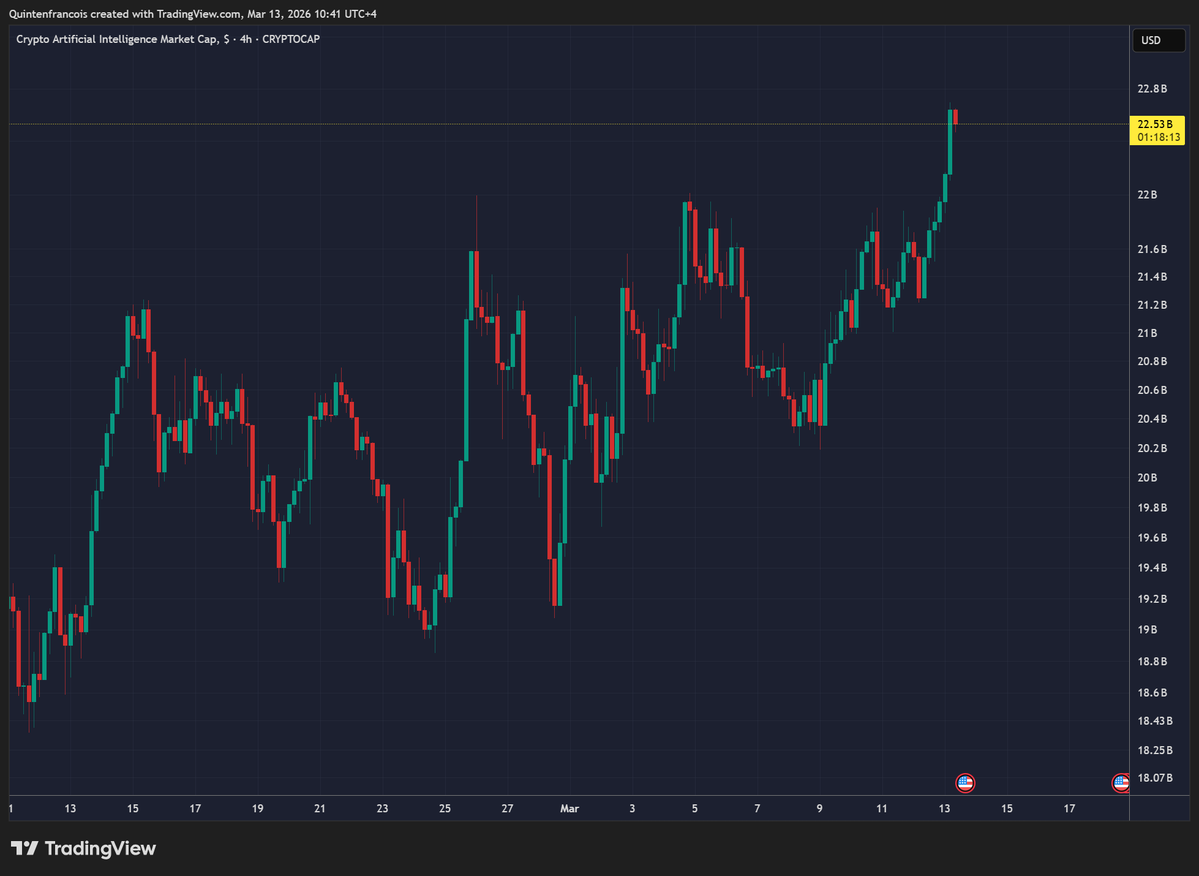 加密货币市场重现活力,人工智能相关代币引领风潮 加密货币市场正重拾生机,而引领这波行情的正是与人工智能紧密关联的代币板块。过去24小时内,人工智能板块市值飙升5%,总估值突破151亿美元。此番复苏绝非偶然。 市场动态速览 人工智能代币总市值在24小时内跃升5%,达到151亿美元。TAO日内涨幅近9%,周涨幅达33%,当前交易价格约为233美元。FET与RENDER分别上涨8%和11%,印证了该板块的强劲势头。 人工智能主导加密市场走势 近期人工智能代币表现显著优于市场其他板块。数据显示,该领域总市值在24小时内增长5%至151亿美元,与市场整体谨慎情绪形成鲜明对比。 去中心化网络原生代币T...