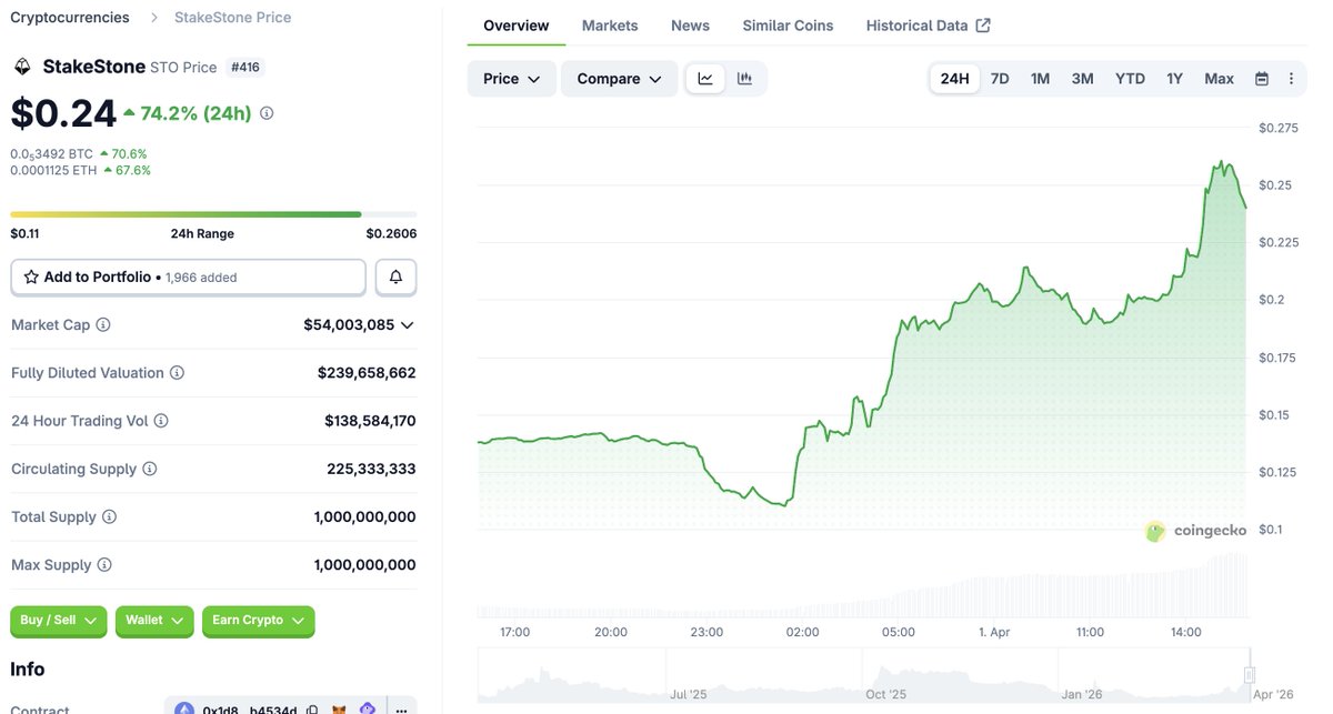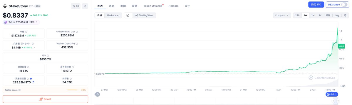 最大供应市值$6644.2万当前供应量1,000,000,000 STO