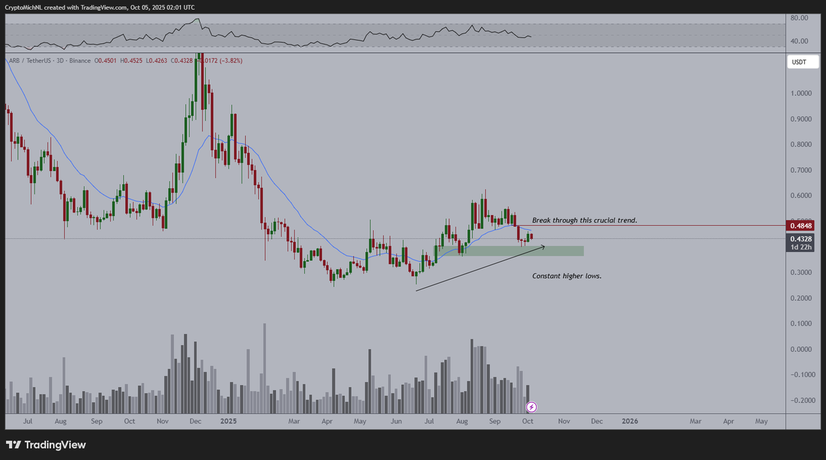 Arbitrum(ARB)蓄势待发:突破关键阻力或将开启上升趋势当前加密货币市场正酝酿新一轮行情,Arbitrum原生代币$ARB成为分析师和投资者关注的焦点。知名加密货币交易员Michaël van de Poppe最近在X平台发布的图表分析中指出,$ARB在更广泛的以太坊生态系统中正处于盘整阶段。最新数据显示,$ARB价格约为0.44美元,虽未显现即时强势,但展现出较强韧性。Van de Poppe的分析强调0.485美元是关键阻力位,若成功突破将可能开启显著上升趋势。以太坊盘整创造战略机遇以太坊生态系统的当前盘整为投资者提供了布局$ARB的战略窗口。作为Layer-2扩容解决方案,Arb...