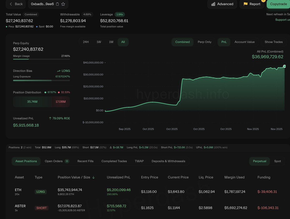 稳定币市值下降$1.81B,而DEX交易量激增——现货上涨18.68%,永续合约飙升230.7%,主要由Aster引领。鲸鱼和机构活跃,BitMine增持$963M ETH,Strategy购入$22M BTC。
