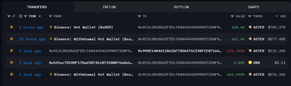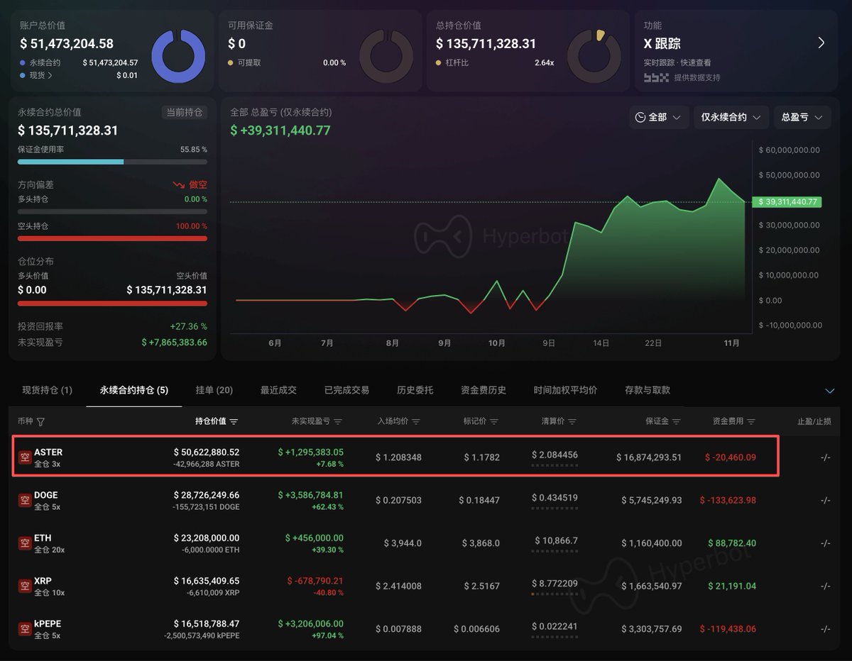 2头鲸鱼累计购入129.59M $ASTER($259M),占流通供应量的7.82%。