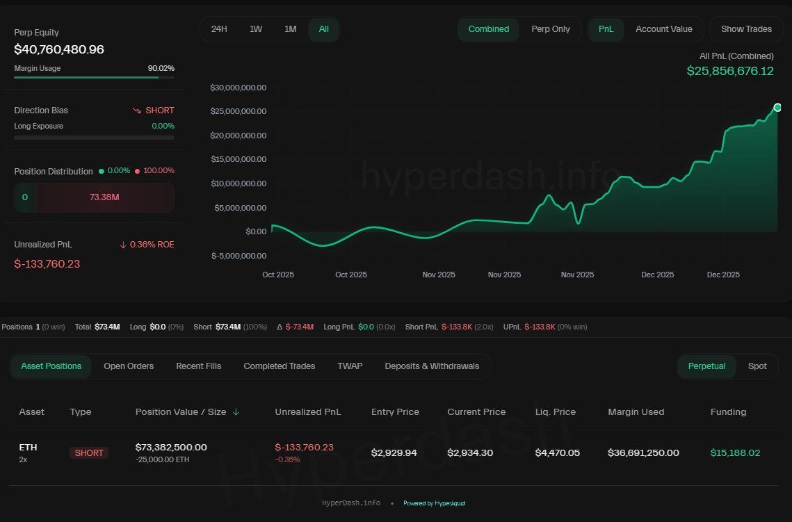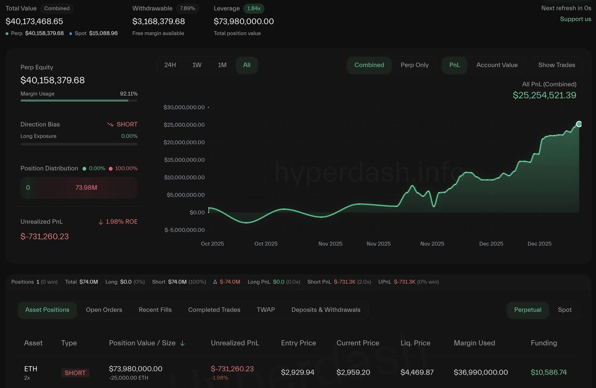 加密货币市场波动导致早期比特币持有者面临巨额浮亏随着加密货币价格持续下跌,杠杆效应开始显现反向作用,一位知名早期比特币持有者正面临巨额账面亏损。持仓概况该早期比特币持有者在比特币、以太坊和Solana的大额多头头寸上承受着约5400万美元的未实现亏损。此番回撤发生在加密货币市场走弱、清算量上升且市场恐慌情绪加剧的背景下。分析师持续警告称,在宏观和政策不确定性时期,高杠杆操作仍然存在较大风险。根据链上分析平台12月16日披露的数据,这个常被称为“比特币元老”的地址目前在三大主流币种的大额多头仓位中面临巨额浮亏。该交易者此前曾实现逾1.19亿美元盈利,但随着市场转弱,利润已缩减至约5000万美元。...