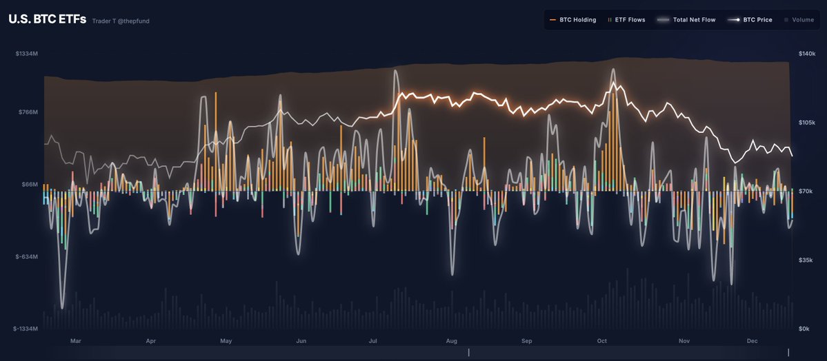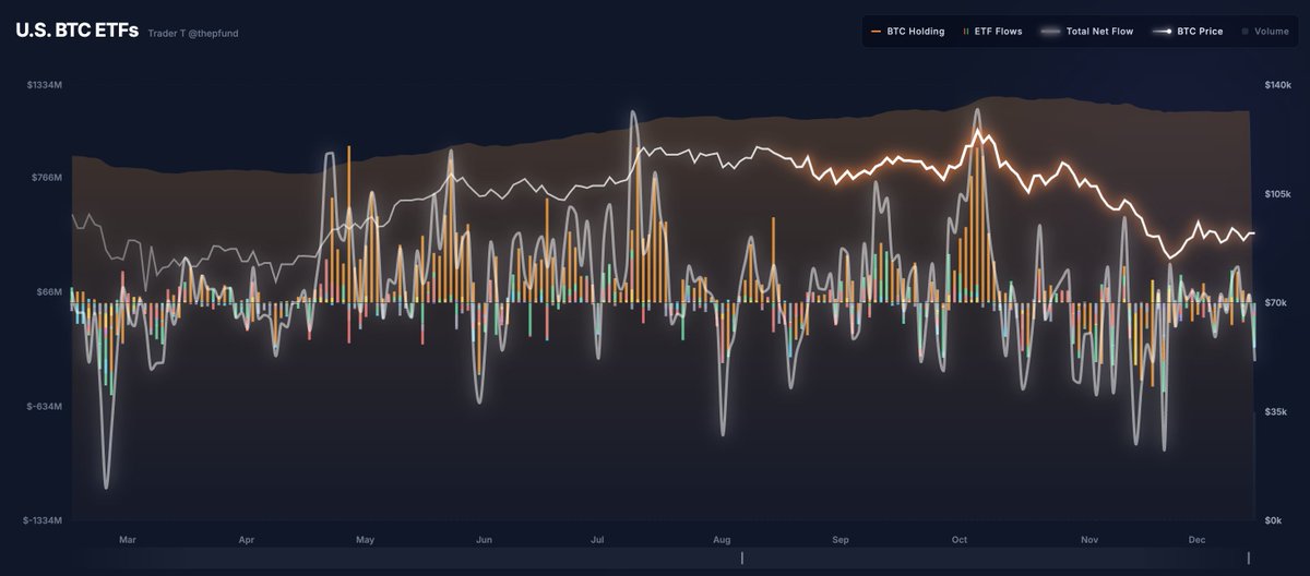 比特币($BTC)反弹难阻ETF资金外流,机构需求降温引市场担忧