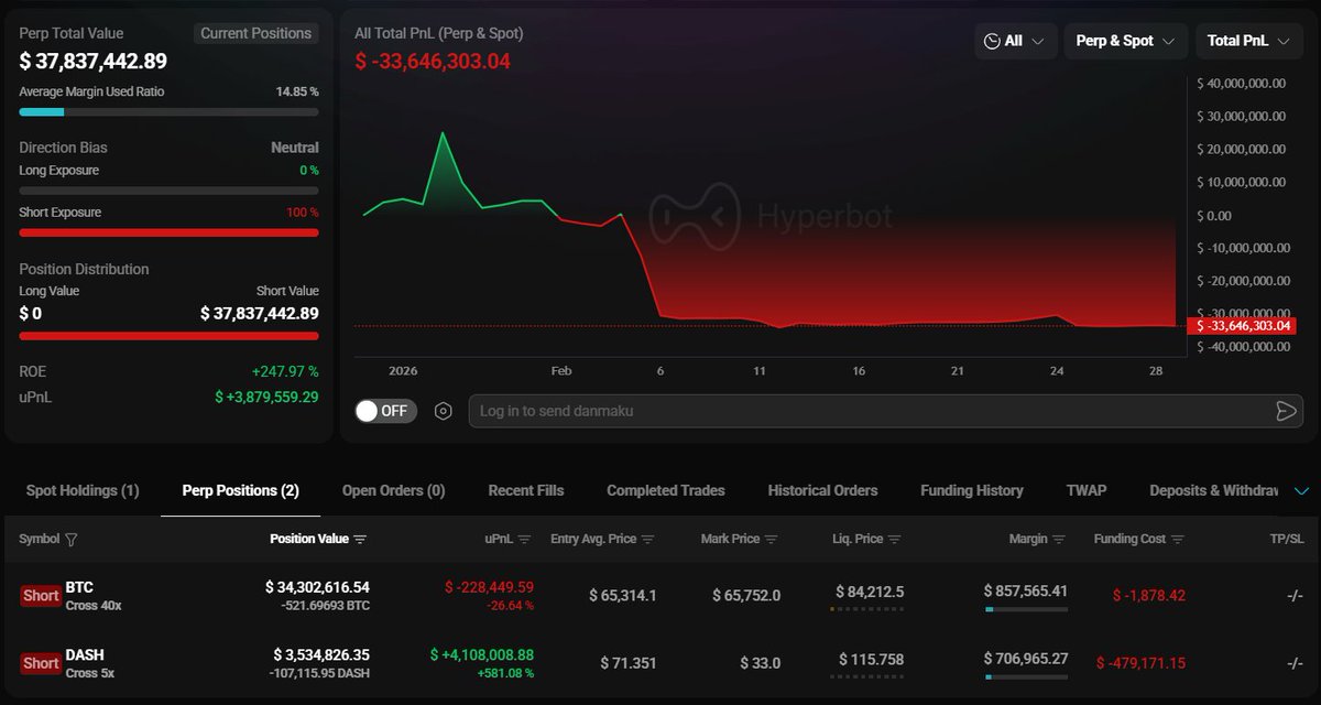 易理华对抗巨鲸,BTC多头仓位全数清仓……一周内亏损2800万美元