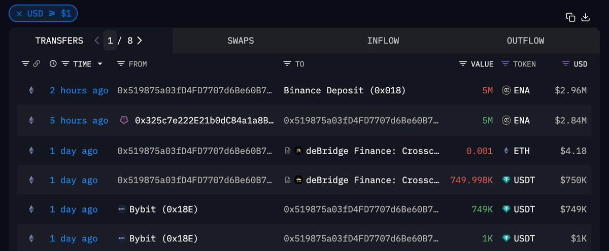 过去 8 小时他又加仓了价值 104.2 万美元的 $ENA ,目前持有的 6 个代币中 $PENDLE 已疑似清仓,其余代币暂未卖出或转移,共浮亏 11.9 万美元