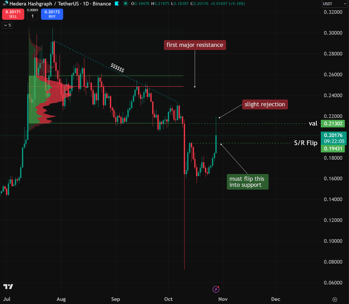 | 3 | HBAR/USDT | $0.2$0.2 | -3.8%3.8% | -0.009364%-0.0094% | $1.37亿