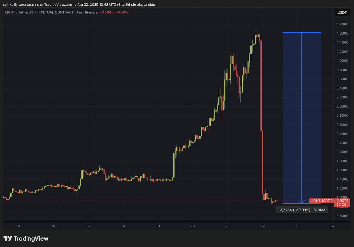 是什么导致了Bitlight价格在暴涨后突然暴跌? 随着LIGHT代币在24小时内跌幅超过74%,从本周初的4.75美元高点跌破1美元,所有市场参与者都在思考这个问题。这次Bitlight价格暴跌令整个市场感到意外,尤其是在比特币和以太坊市场保持稳定之际。尽管加密货币总市值上涨0.7%,LIGHT却呈现显著弱势。 当前Bitlight价格走势 根据市场数据,该代币现报0.91美元,短时间内连续跌破多个关键支撑位。在经历近400%的三日涨幅后,抛售动能迅速积聚。当市值跌破1.48美元关口时,清算程序启动,加剧了下跌趋势。 技术指标显示弱势 相对强弱指数接近45且未显现超卖反弹信号;MACD...