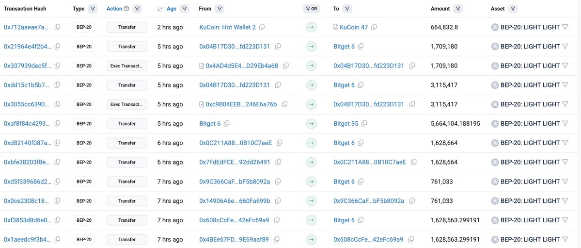 LIGHT团队钱包两日内向Bitget转移价值880万美元代币