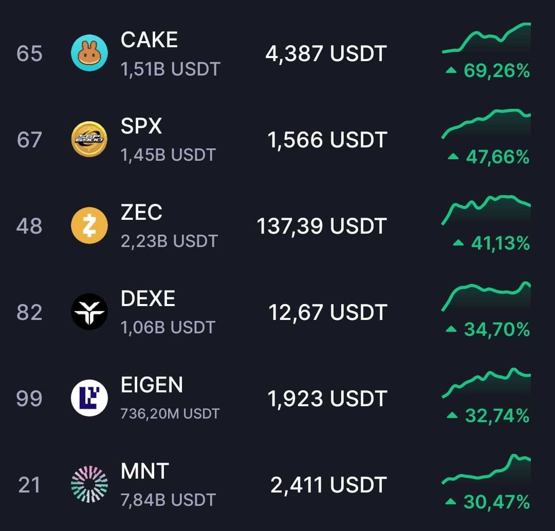 加密货币动态:ZEC、MNT与Aster涨势强劲
