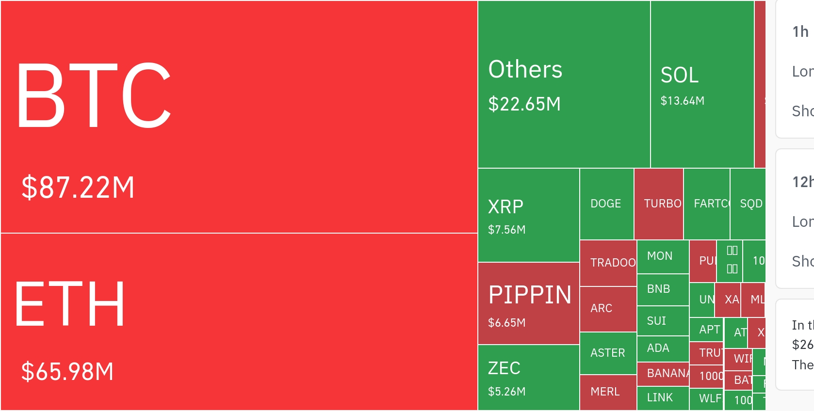 加密货币市场24小时内清算杠杆头寸8770万美元,空头占比86.2%