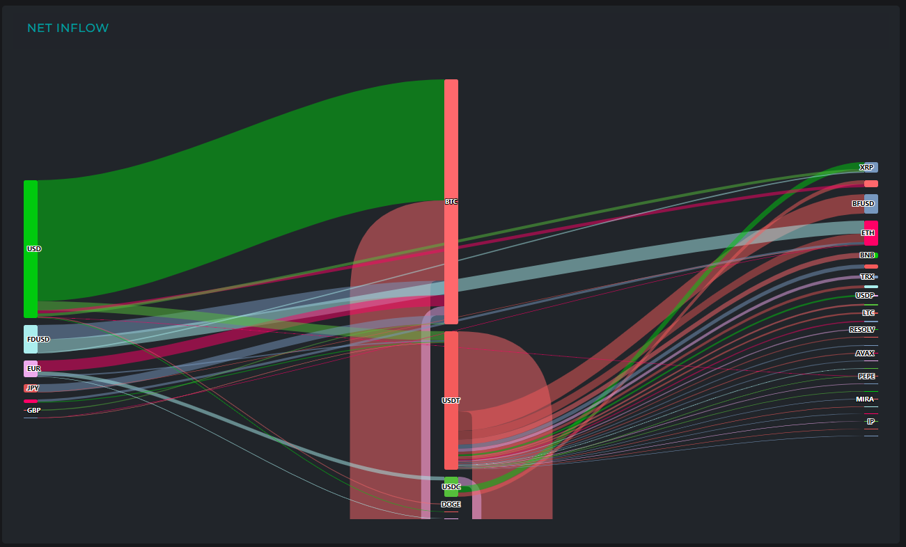 加密货币市场资金流向分析 今日加密货币市场出现大规模资金流入,其中比特币成为主要资金聚集地。数据显示,美元稳定币与USDT均呈现显著资金注入态势。 法定货币资金流向 美元资金:单日流入2.938亿美元,其中2.576亿美元流向比特币,1930万美元流向USDT,680万美元流向SOL,610万美元流向XRP,另有少量资金分散至PEPE、DOGE等代币。 欧元资金:3510万欧元中,2350万流向比特币,790万流向USDC,290万流向USDT,显示出对这三种资产的明显偏好。 日元资金:1830万日元几乎全部流向比特币与以太坊,其中1720万注入比特币,110万注入以太坊。 韩元资金:68...