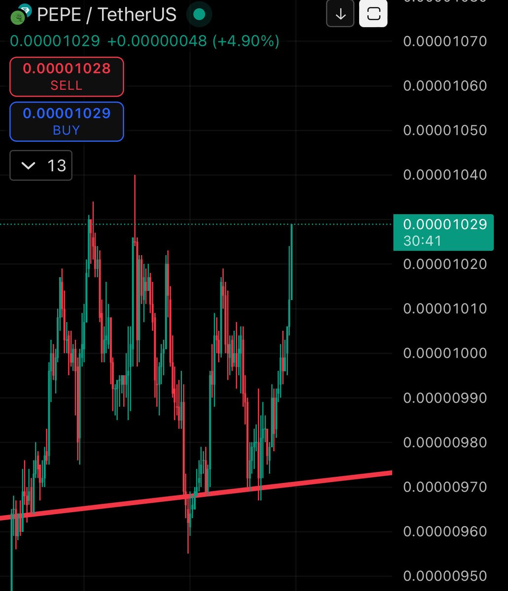 佩佩币突破对称三角形态后目标价上看0.0000108美元