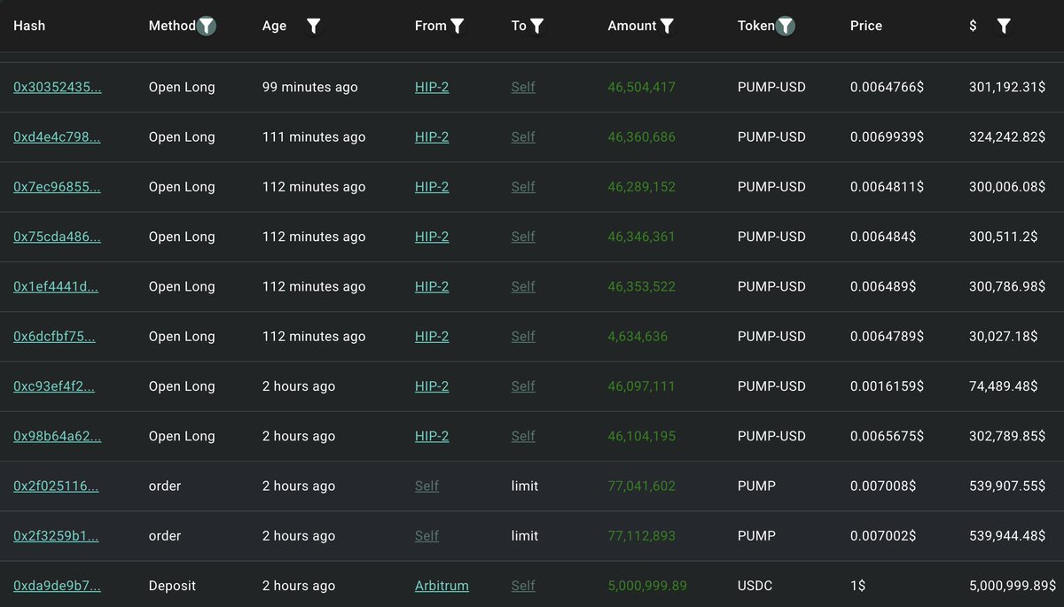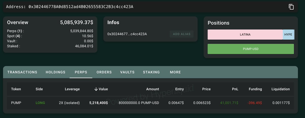 其余 $ETH / $PUMP / $HYPE 多单也处于浮亏状态,账号整体浮亏达 2146.8 万美元;传送门 👉