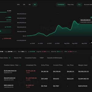 核心要点 黄立成的以太坊持仓正面临爆仓风险,当前以太坊价格已逼近爆仓阈值。这一事件可能对相关加密货币产生连带影响,包括XPL、ASTER和PUMP等代币或将承受市场波动压力。 持仓风险与市场波动 黄立成的以太坊多头仓位在3992美元处面临爆仓风险,该价格与当前市价极为接近。业内分析指出,若触发爆仓可能引发显著市场波动,加密货币市场或将出现进一步价格动荡。 市场影响分析 由于黄立成在多个代币中持有重要仓位,其交易活动产生的价格敏感性波动可能蔓延至其他加密货币。历史数据显示,类似爆仓事件往往会导致更广泛的市场震荡。 业内人士表示:"当持仓爆仓价与当前市价如此接近时,一旦触发可能造成剧烈的市场...