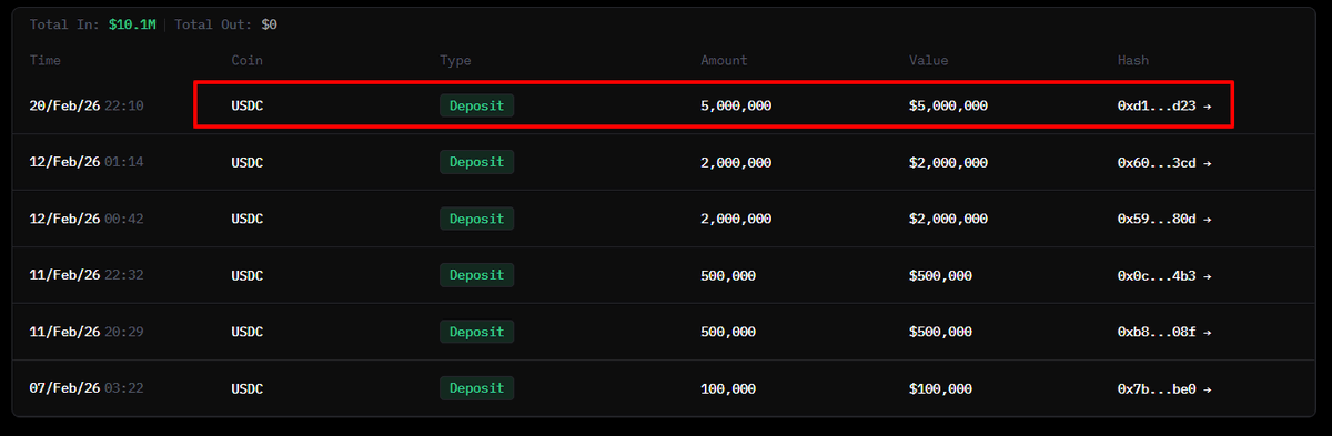 鲸鱼"0xaCB"向#HyperLiquid存入了500万美元$USDC,并增加了其#GOLD(4倍)持仓,同时新开了#SILVER(3倍)空头仓位。