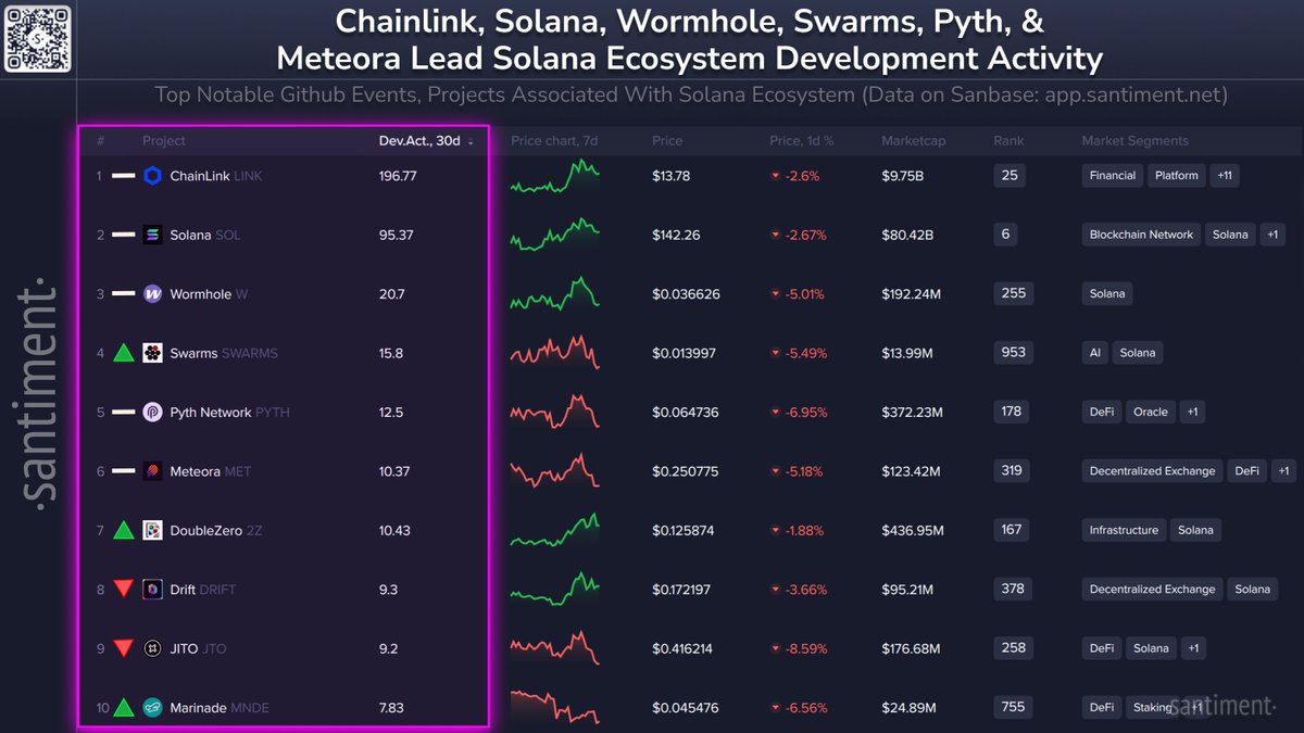 Solana生态开发活动排行榜揭示近期焦点项目加密货币分析平台Santiment近期公布了Solana生态系统中开发者最为关注的替代币项目。该排名基于GitHub等开源平台的开发活动数据生成。数据显示,开发者对Solana生态的兴趣主要集中在预言机、基础设施及流动性相关领域。值得注意的是,支持跨链集成与数据流通的项目在榜单中表现尤为突出。Solana生态系统开发活动排名如下:Chainlink (LINK) – 196.77Solana (SOL) – 95.37Wormhole (W) – 20.70Swarms (SWARMS) – 15.80Python Network (PYTH) –...