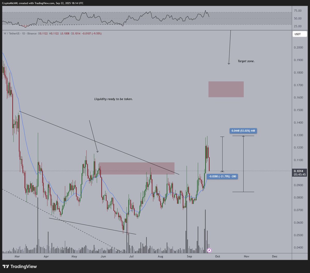 以$0.09的价格买入了$1,500的$W(目前价格为$0.11)。