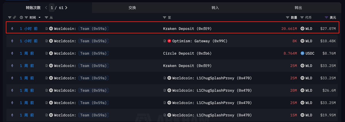一个应该是通过 OTC 从 Worldcoin 团队钱包购买了 5302.9 万枚 $WLD 的地址,今天把 2957.3 万枚 WLD ($5619 万) 转到了某个机构业务平台地址,可能接下来会转进 CEX 出售。 ◎过去半年里,这个地址一共用 5000 万 USDC 从 Worldcoin 团队钱包购买了 5302.9 万枚 $WLD,均价 $0.94。 ◎在最近两天 WLD 上涨了一倍后,这个地址今天转了 2957.3 万枚 WLD ($5619 万) 到一个机构业务平台地址,可能接下来会转进 CEX 出售。 ◎以目前 WLD $1.9 的价格,他们已经浮盈高达 $5090 万。