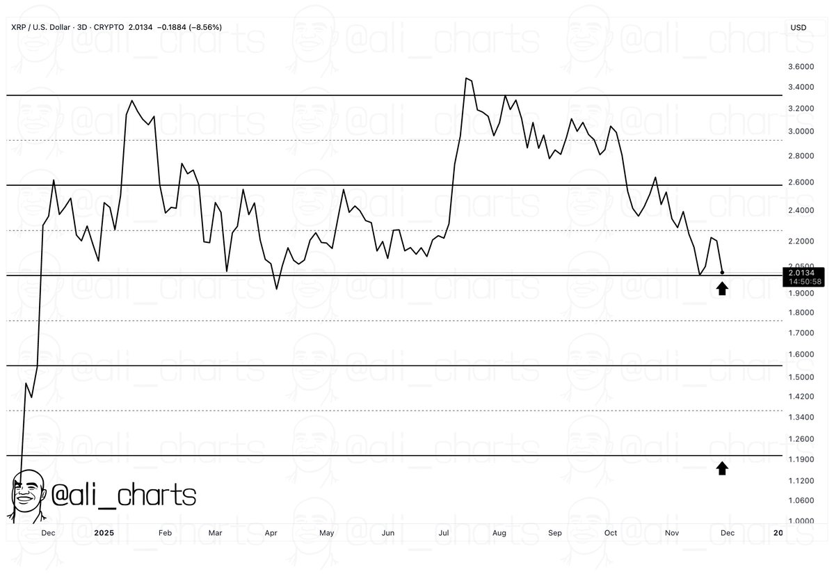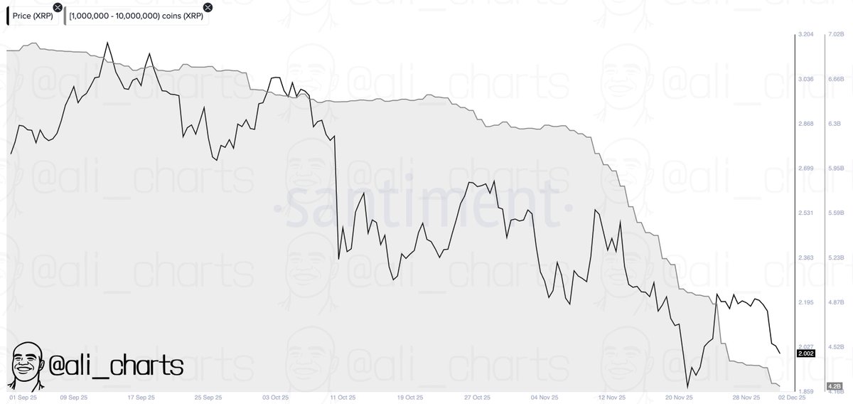 市场情绪疲软,XRP艰难维持支撑 知名加密货币分析师Dark Defender指出,当前抛售XRP的投资者很快会重燃兴趣,但届时为时已晚。他预计当资产价格突破更高位置时,这些投资者将陷入"错失恐惧症"的焦虑状态。 XRP正经历艰难时期,随加密货币市场整体下行。自十月以来,该代币跌幅近30%,现徘徊于2.06美元附近。卖方持续施压,2美元关口已成为多头坚守的重要支撑位。 持续下跌导致持有者情绪转向悲观。上月末社区研究员数据显示,巨鲸仅在两天内抛售约4亿美元市值的XRP。这些抛售主要来自持有100-1000万枚XRP的钱包,表明大额持有者正在资产价格挣扎时减仓。 可能引发回归的关键价位 尽管市场...
