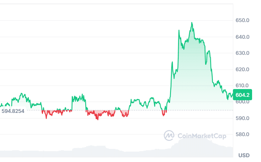 比特币现金(BCH)价格突破600美元,创2025年新高——多头剑指1000美元