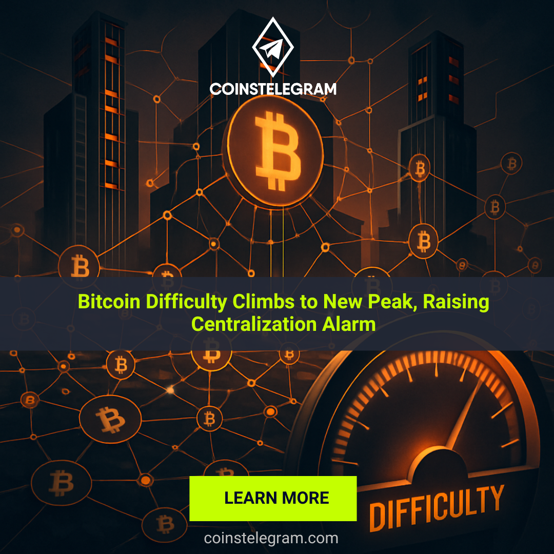 比特币挖矿难度再创新高 行业集中化隐忧浮现9月29日,比特币(BTC)挖矿难度指标攀升至142.3万亿的历史新高,该指标反映区块链网络新增区块的相对难度。这是继8月之后,比特币挖矿难度在近几周新增算力推动下连续第二个月刷新纪录。据链上数据显示,比特币全网算力同步创下每秒1.1万亿次哈希运算的新峰值。随着挖矿难度持续攀升,以及维系网络安全所需的高能耗算力需求,个体矿工和企业面临的竞争压力日益加剧,引发业界对比特币挖矿日趋中心化的担忧。政府与能源巨头入局改变竞争格局当前中小型矿企乃至上市公司正面临来自政府和能源基础设施供应商的双重竞争压力。这些特殊参与者或享有免费能源优势,或能将挖矿业务垂直整合至