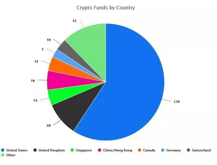 目前的加密货币基金中,半数位于美国。英国、新加坡、加拿大、德国和中国也都有相当数量加密货币基金。东欧和俄罗斯也开始有了一些此类基金。