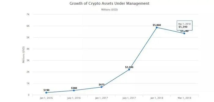 加密货币基金总体规模增长很快,主要源自两个主要因素:不断有新基金成立,同时,其所持加密资产也在升值。2017年下半年,第二个因素表现尤为突出,当时比特币价格接近翻了两番。加密货币基金总体规模在2018年如果出现些许缩水也是有可能的,因为加密货币价格从2018年初的历史高位不断下滑。