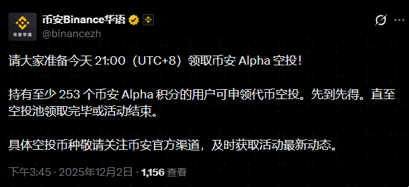 🚀币安Alpha,12月2日空投预告,少了2万人,又回到了30万!