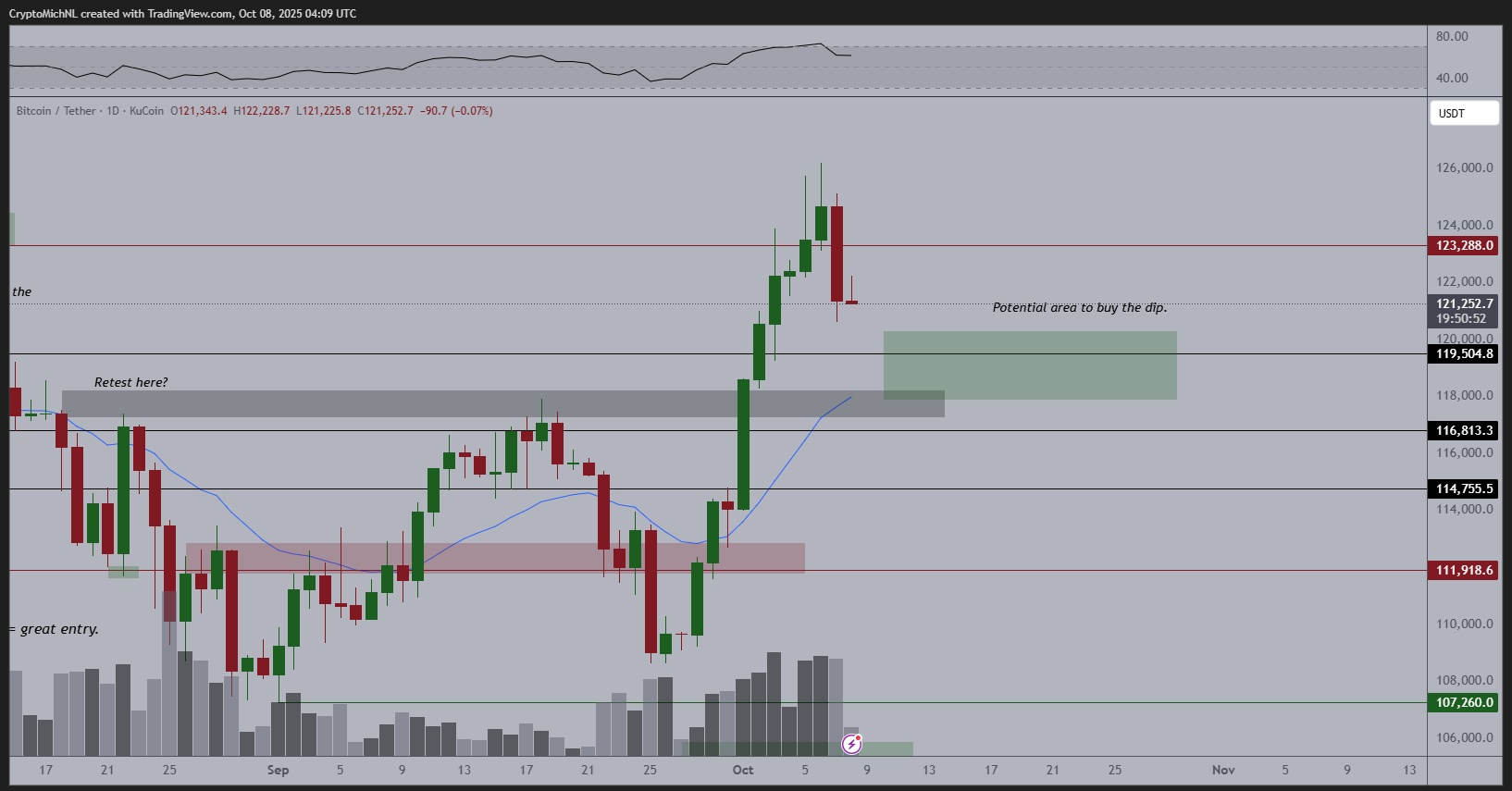 对于加密货币交易员、分析师和企业家 Michaël van de Poppe 来说,下一个买入区域扩大至 118,000 美元。