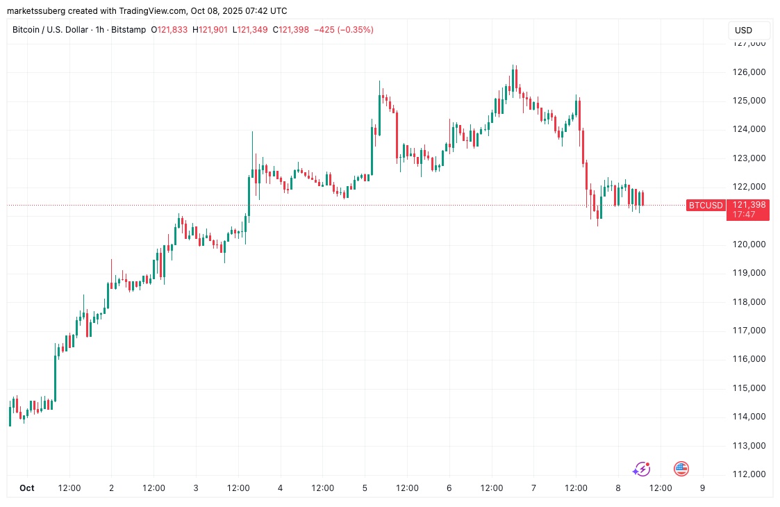 由于交易所用户押注新的 BTC 价格波动,周三难以收回 122,000 美元。