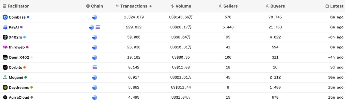 这些Facilitators是x402支付生态的核心基础设施层,负责使用x402协议验证和结算HTTP资源的链上支付。