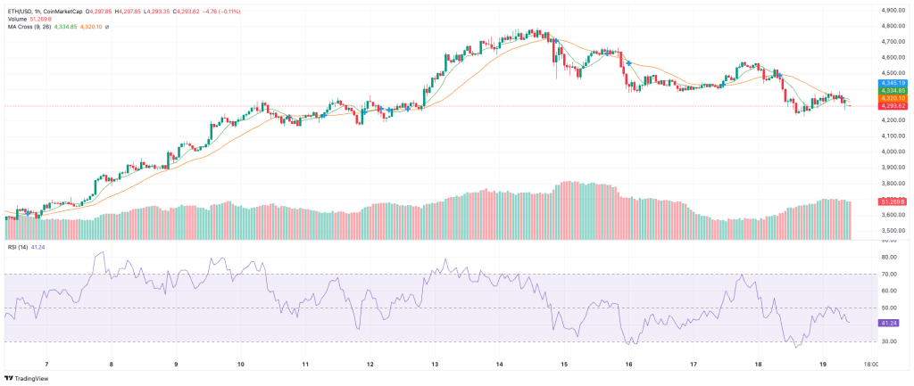 根据以太坊现时的图表显示,在上周强势上涨后,曾冲入高达4,700美元的区间,但距离象征性的4,800美元标志仅差一步。在那之后便回调至约4,260美元,目前市场正在整合。现时7天的图表显示交易活动急剧增加,其24小时交易量增加了63.6%,显示对太坊的需求仍然很高。市场市值保持在5,140亿美元,让以太坊的价格约低于2021年11月创下的历史最高点4,891美元的约13%,其相对强弱指数RSI仍保持于41的中性水平。