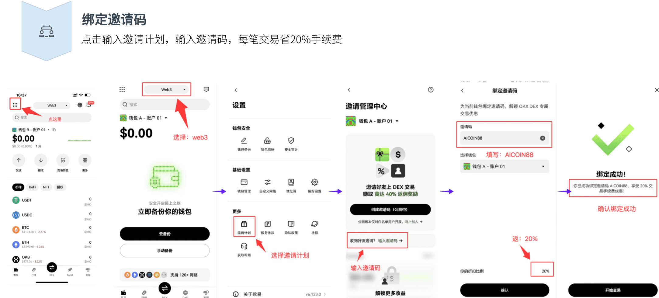 这里我给新手朋友推荐云备份,简单又快,绝对是最优选择。创建完钱包该干嘛了?大家猜到没?肯定是绑定邀请码啊!绑定邀请码之后,每笔交易都能省 20%—— 相当于所有费用直接打 8 折,这折扣力度简直是 “打骨折” 了!