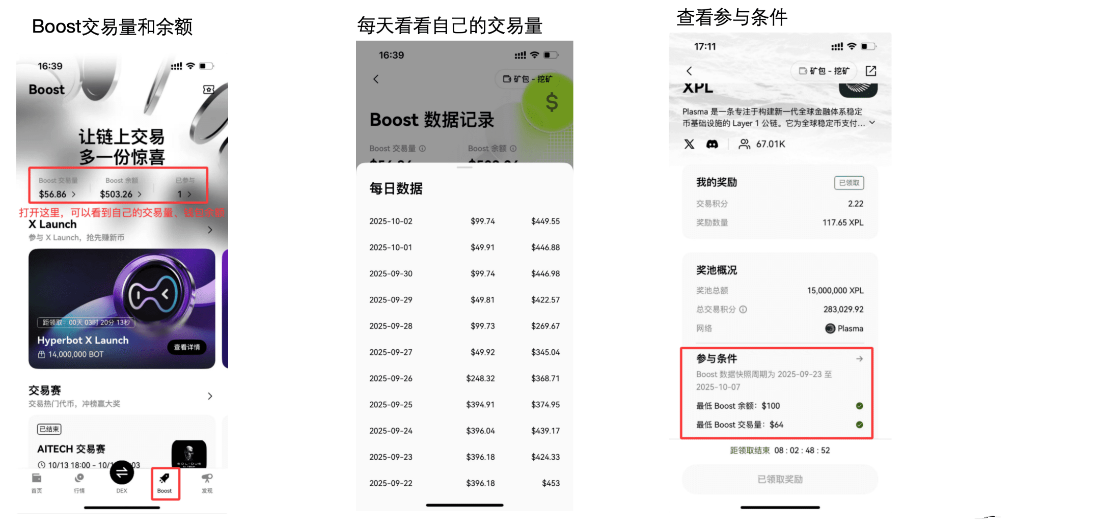 OKX Boost 的网页参与地址在这:https://web3.okx.com/zh-hans/boost/x-launch,也就是说,不管你啥时候开始刷量,都能有甜头,都能赚到钱。