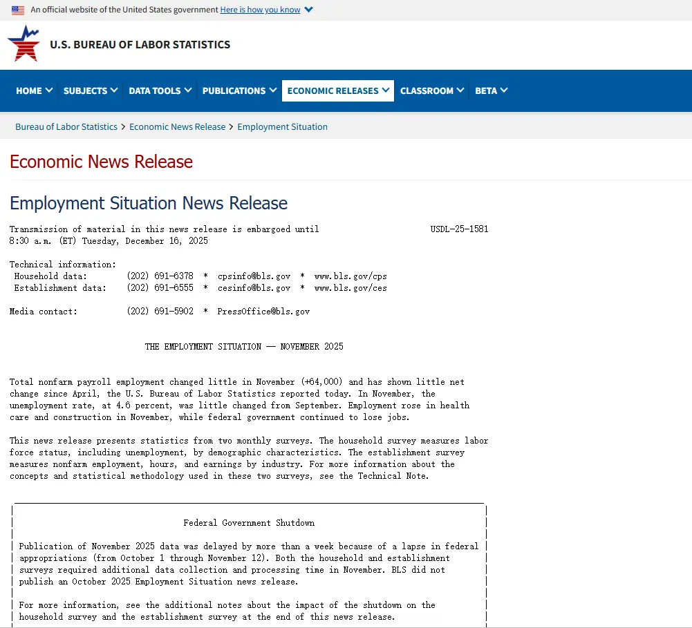 昨天的就业报告并非按月发布,而是合并了 10 月和 11 月的数据,原因是 10 月份美国政府停摆造成了数据中断。仅此一点就意味着,这些数据需要比以往更加谨慎地解读。