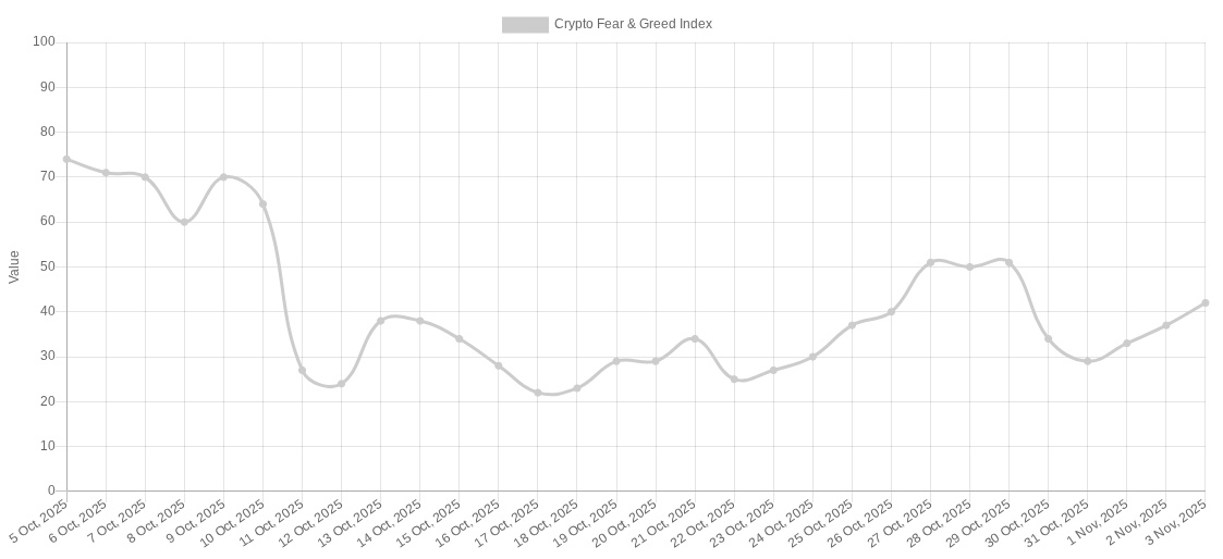 与此同时, 加密货币恐惧与贪婪指数仍处于“恐惧”区域,尚未反映出比特币最近跌至 107,000 美元的情况。