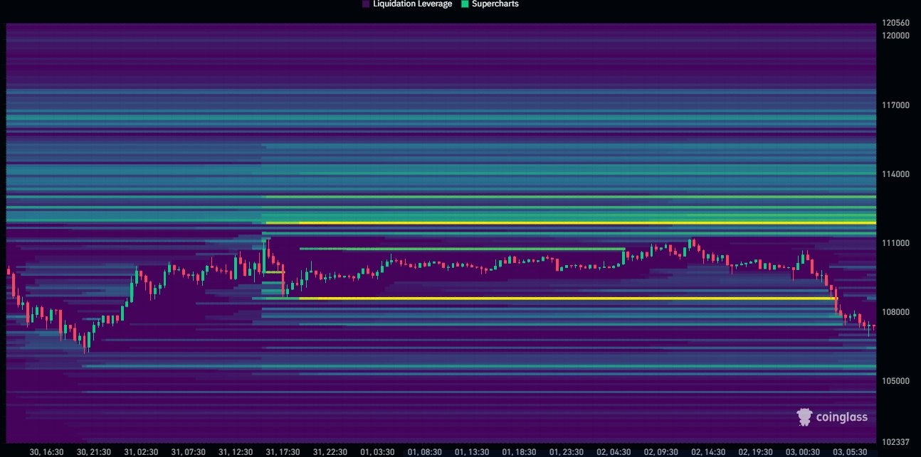 “价格突破了10.85万美元的下限。11.2万美元附近仍然有相当数量的支撑位。放眼更广阔的市场,10.5万至10.6万美元以及11.7万美元的价位值得关注。”