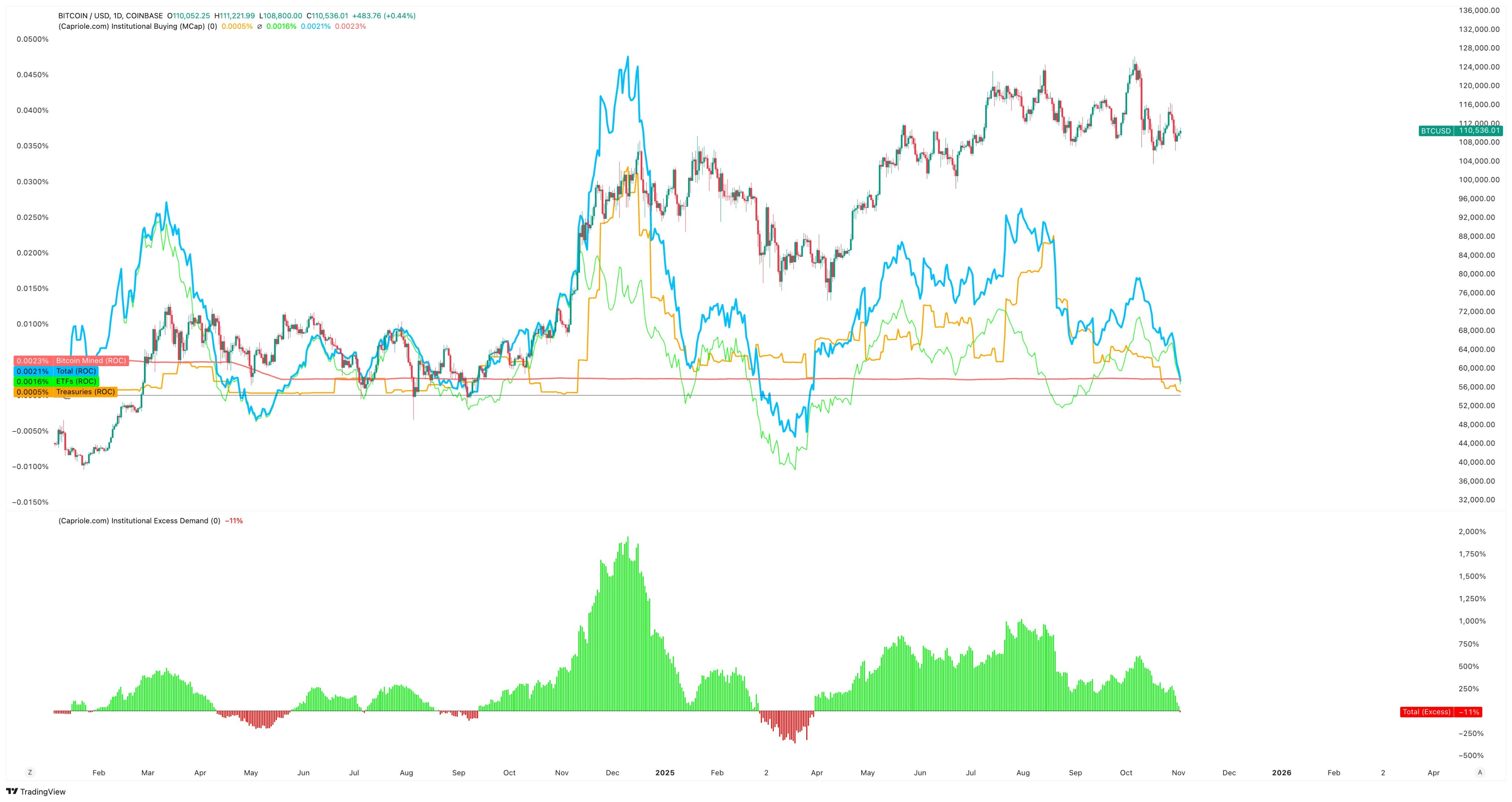 “7 个月以来,机构净购买量首次跌破每日矿产供应量,”他在周一公布 Capriole 数据时评论道。