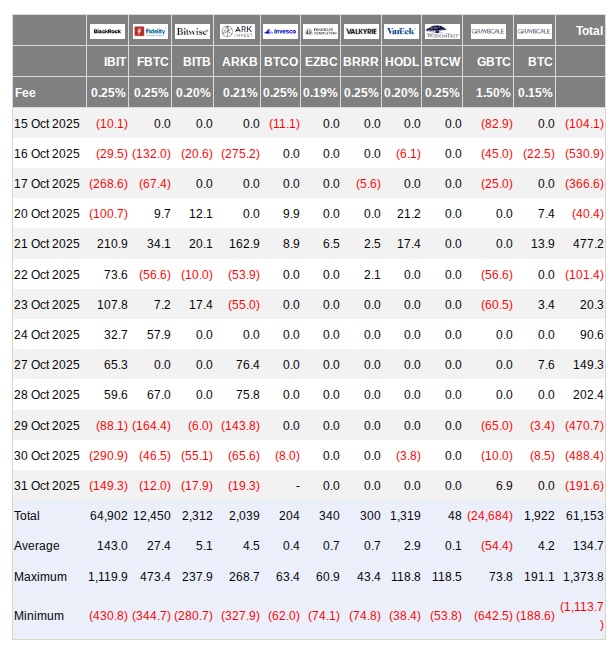 英国投资公司 Farside Investors 的数据显示,截至 10 月 31 日,美国现货比特币交易所交易基金 (ETF) 连续三天出现净流出。