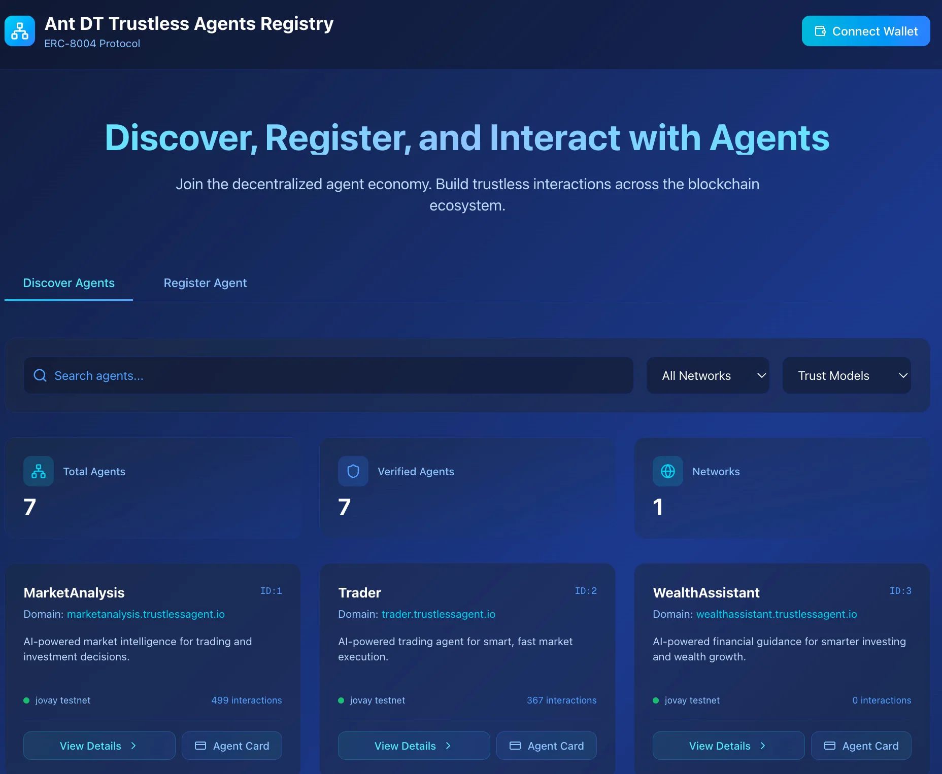结合ERC-8004的设计,我们在Pharos和Jovay网络构建了面向Web3的Trustless服务能力,可帮助用户分配Web3世界的「可信身份Agent DID」,同时我们也在原有的基础上进行了金融级增强的TEE/ZK验证能力扩展,未来支持如面向机器交易在金融场景的更高安全的验证增强。